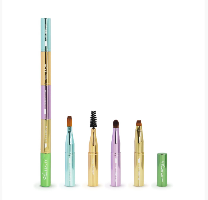 Ensemble compact et empilable de pinceaux (sourcils, fard à paupières, crayon à sourcils, lèvres) — parfait pour les voyages et le maquillage en déplacement.
