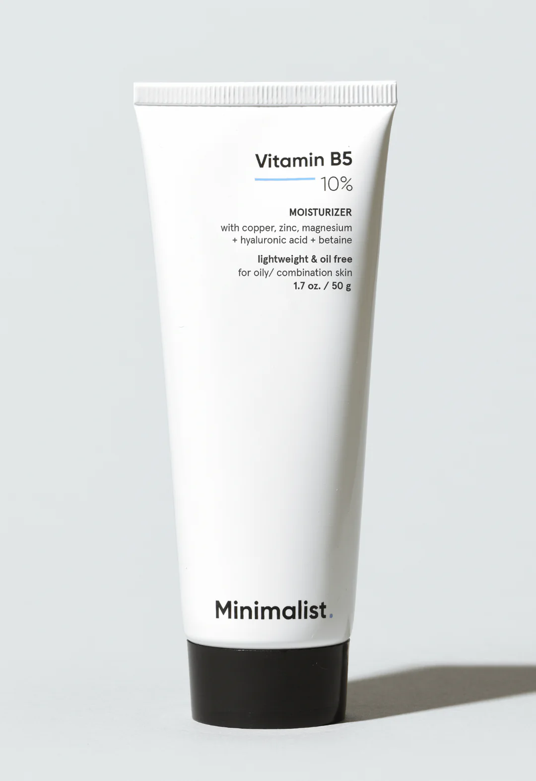 Le gel hydratant minimaliste à la vitamine B5 (10 %) est un soin léger et non gras, conçu pour hydrater et réparer la peau en profondeur sans laisser de film gras. Formulé avec 10 % de vitamine B5 (panthénol), ce gel booste l’hydratation tout en apaisant et renforçant la barrière cutanée, ce qui le rend idéal pour les peaux grasses, mixtes, à tendance acnéique et sensibles. Enrichie en acide hyaluronique, zinc, cuivre et magnésium, sa formule aide également à protéger la peau des radicaux libres et contribue à un teint plus net et hydraté.